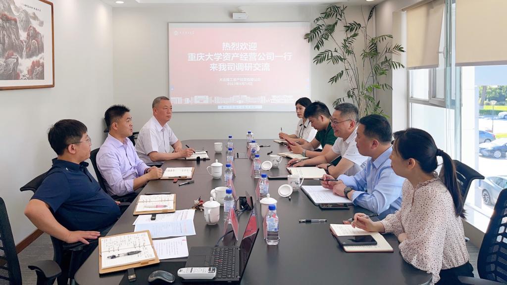 2023年6月14日上午,重庆大学资产经营公司副总经理曾上,监理公司副总张群,酒店行政总监李键一行至我司调研交流,大连理工资产经营公司党委书记、董事长张旭,总经理张吕,酒店公司总经理李晓东出席会议,会议由副书记赵国朋主持。