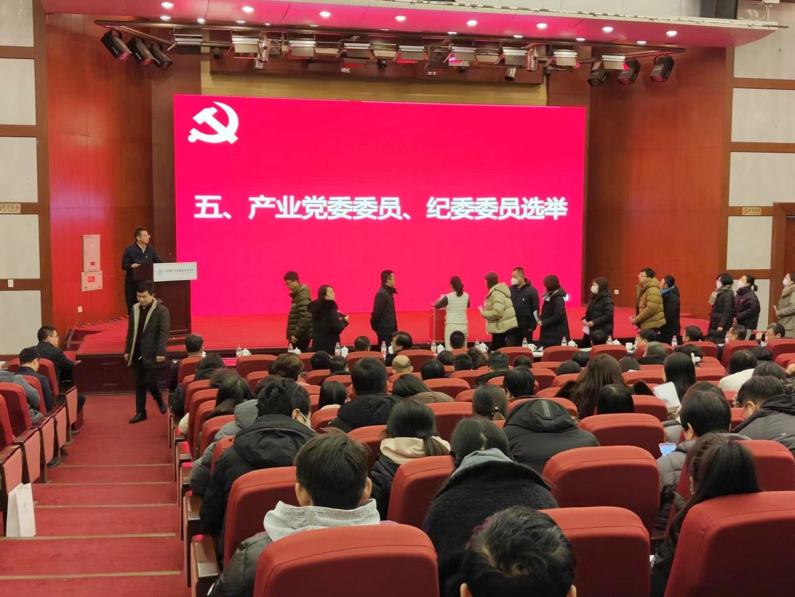 经学校党委批准,12月25日下午2点,产业党委在国际会议中心二楼报告厅召开党员大会,选举新一届中国共产党大连理工大学产业委员会委员和中国共产党大连理工大学产业纪律检查委员会委员。组织部干部科科长兼编办机构科科长侯坤超出席了会议,产业党员代表共计190人参加会议,产业党委副书记、资产经营公司副总经理于长福主持会议。