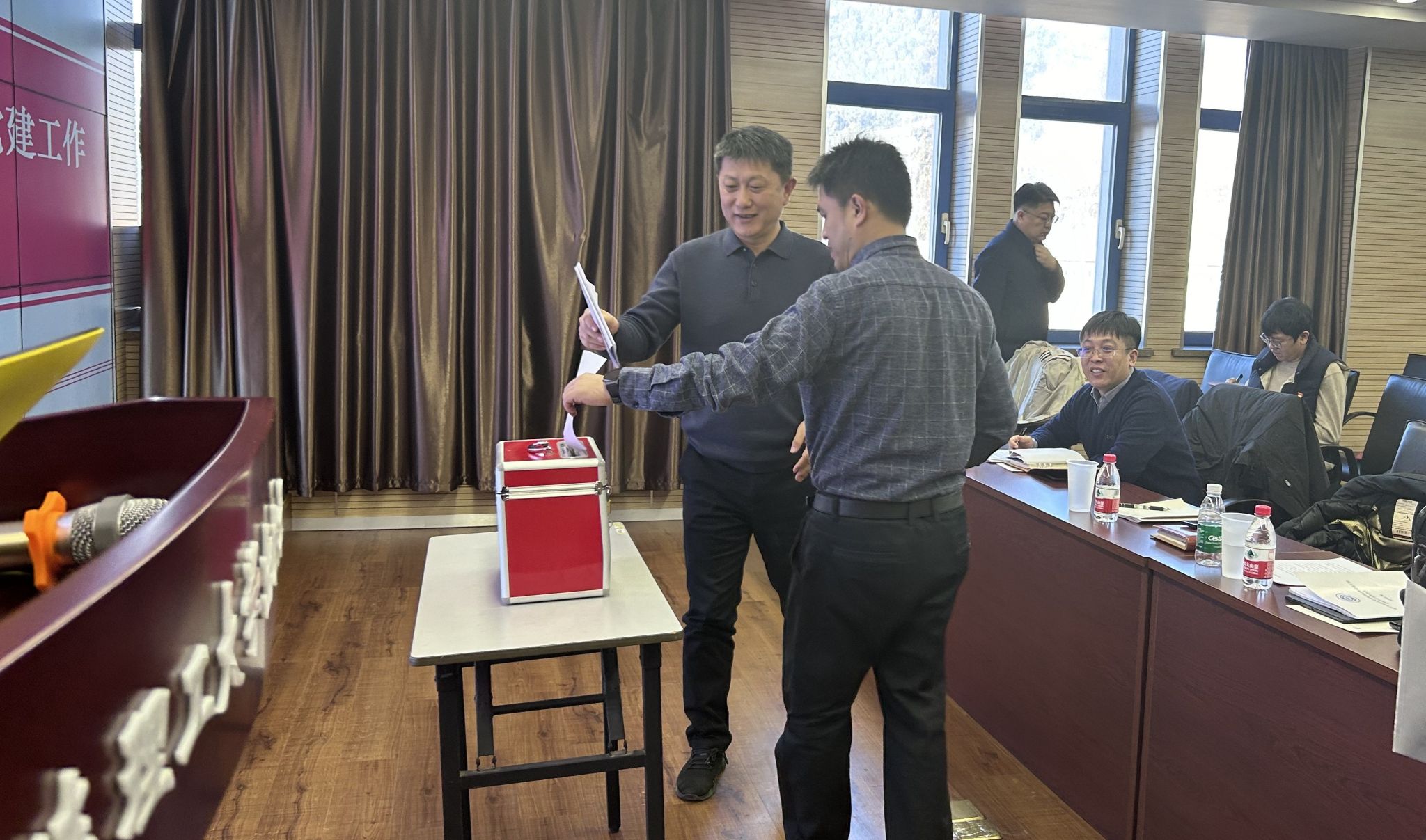 述职汇报后,分管领导与汇报人员进行现场交流与座谈,与会人员对各支部书记进行民主测评。