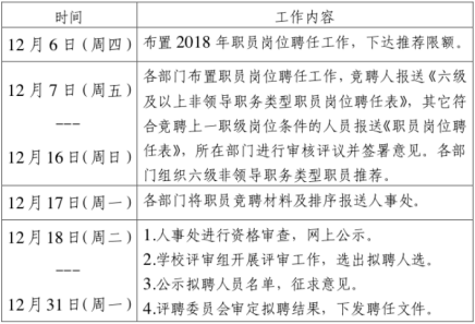 2018年职员岗位聘任工作时间表