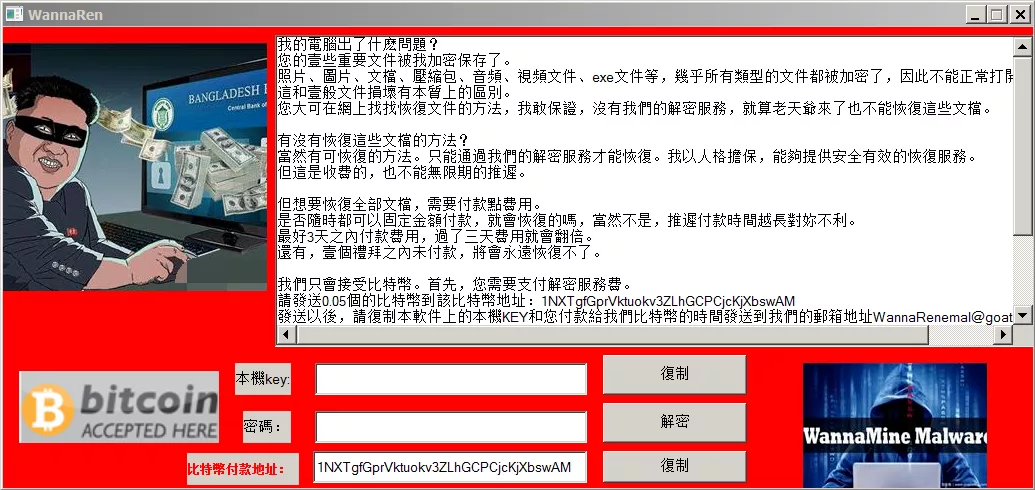 2020年04月07日,经监测发现网络上出现一款新型勒索软件WannaRen,该勒索软件会加密Windows系统中几乎任何文件,并且以.WannaRen后缀命名。